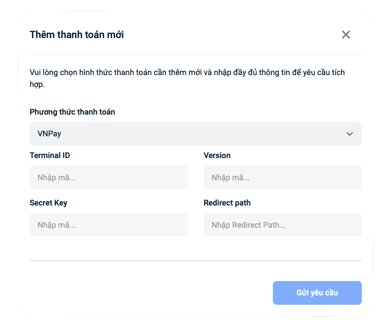 - Redirect Path: Đường dẫn về lại Zalo Mini App khi thanh toán thành công (Mặc định sẽ về home).